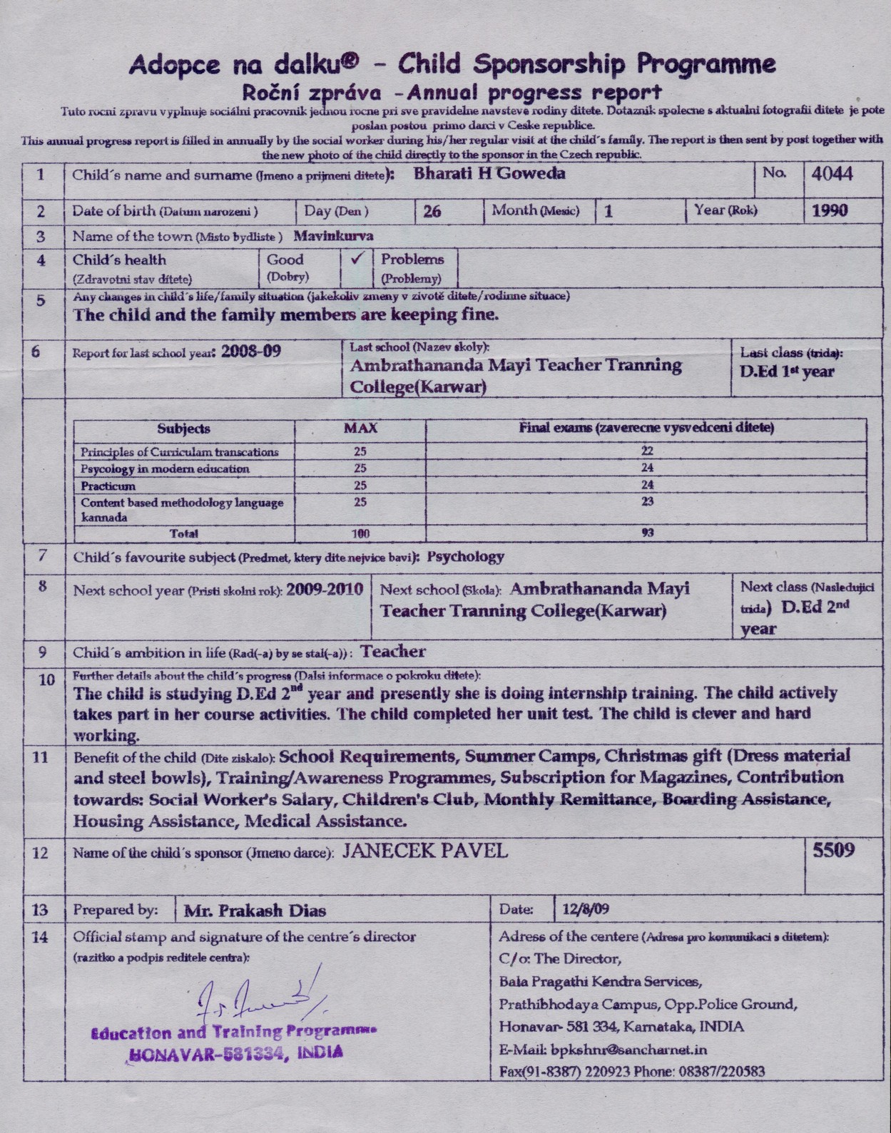 vysvědčení od naší Bharati